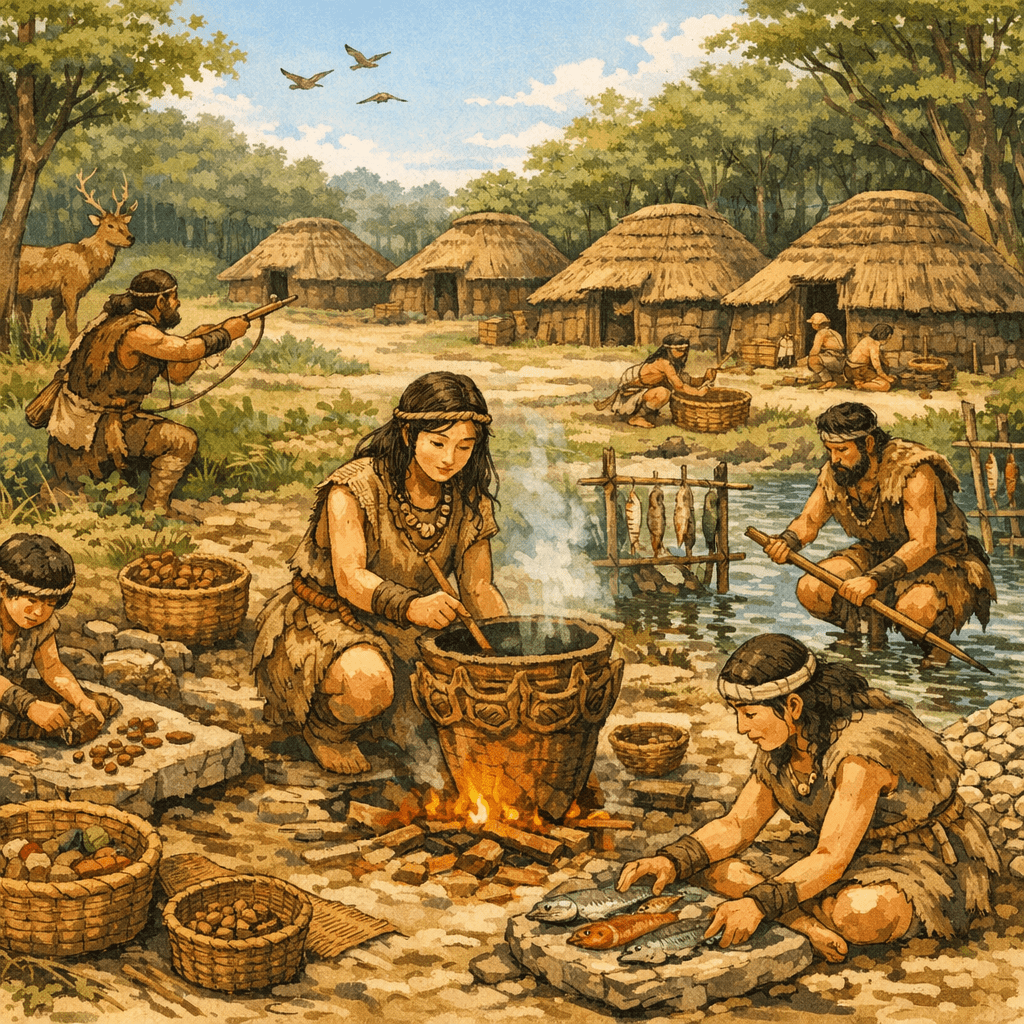 縄文時代は、日本史の中でも特に長い時代で、1万年以上続いた文化として知られています。人々はまだ農業中心の社会ではなく、自然と共に生きる狩猟採集社会でした。